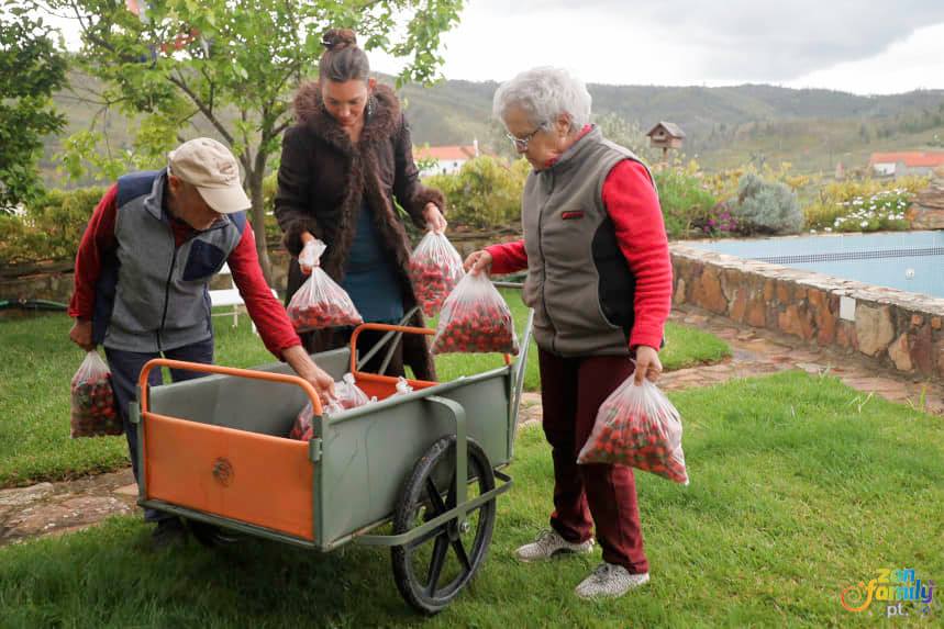 Os olhinhos dos vizinhos brilhavam e agradeciam a generosidade. Mas todos eles também são sempre tão generosos. Tantas vezes à nossa porta lá estão miminhos das suas hortas. Um encanto que comove os nossos corações.