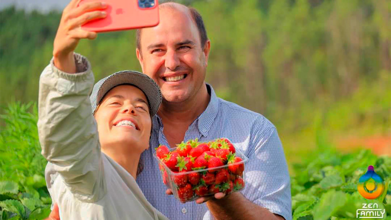 ” A experiência é eu poder andar aqui no meio do morangal… É sentir a frescura, sentir o molhado. E é esta experiência que torna esta manhã completamente inspiradora e transformadora.”